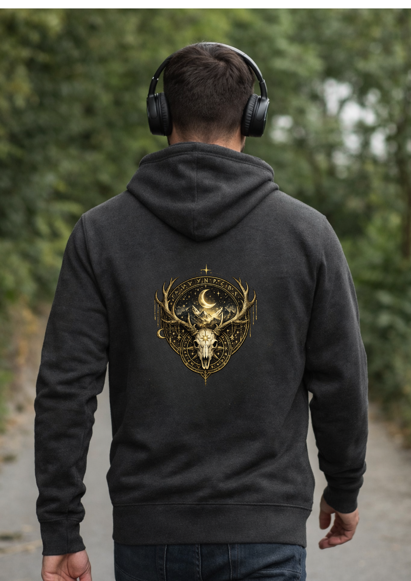 Our Rune Mountains unisex Hooded Sweatshirt is designed for those who walk their own path and trust the quiet strength within. Featuring a powerful back artwork of mystical moonlit mountains framed with celestial runes and sacred geometric detailing, this hoodie represents resilience, clarity, and alignment with your higher direction.