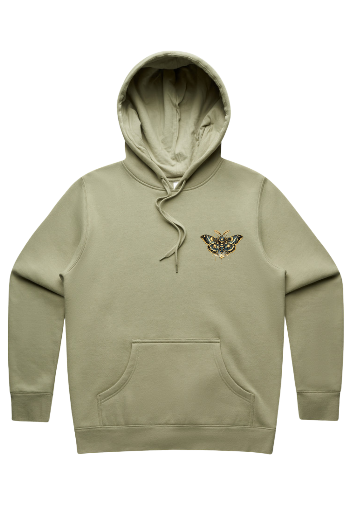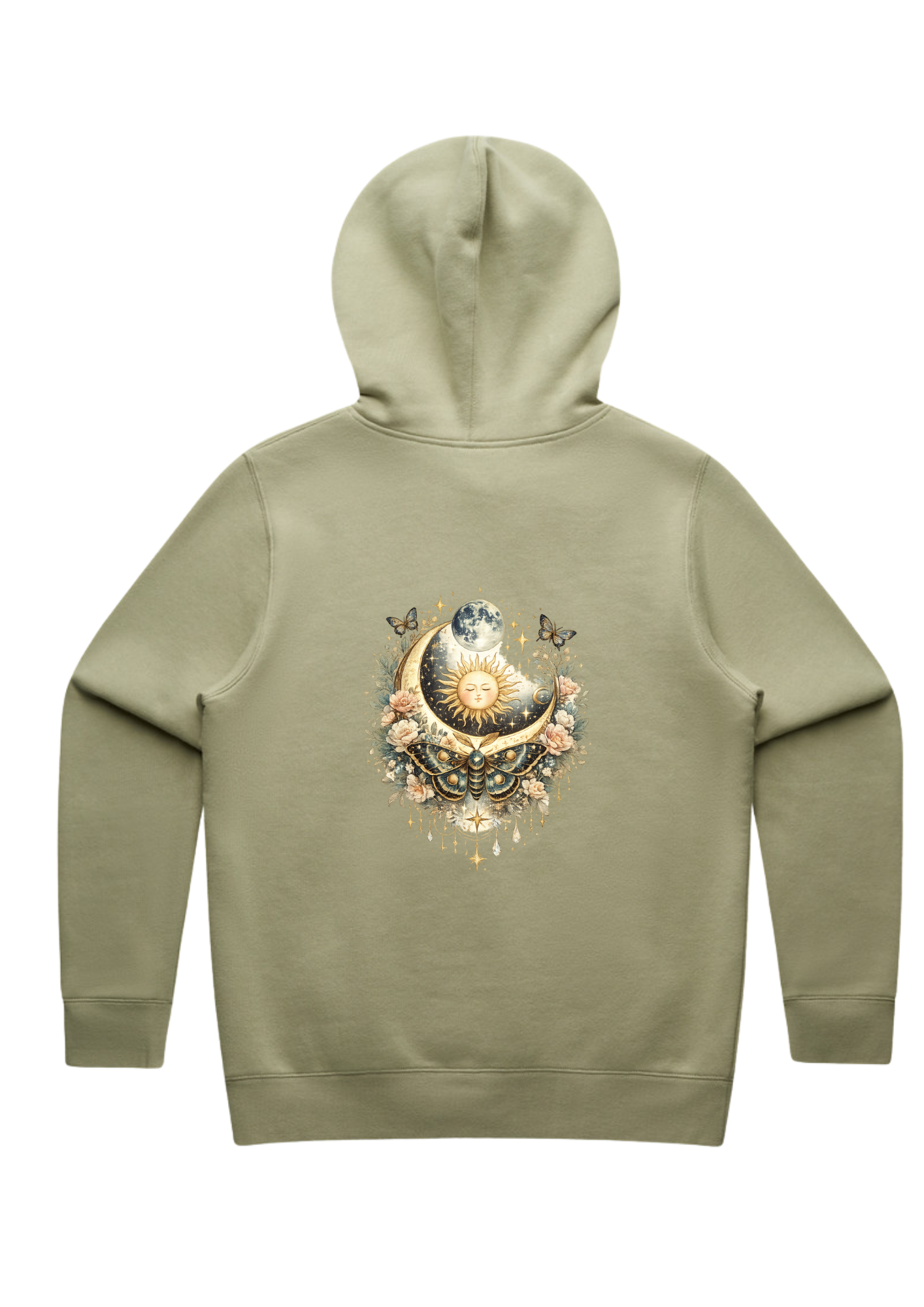 Featuring an intricate celestial moth artwork on the back, surrounded by moon phases, florals, and soft cosmic elements, this hoodie represents transformation, intuition, and the courage to trust your inner guidance. A smaller complementary moth sits over the front pocket area, creating a balanced and wearable design that feels both subtle and powerful.