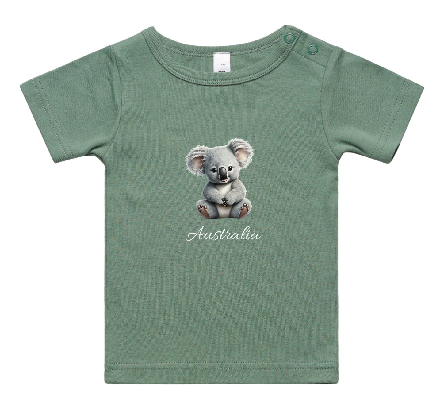 The sweet koala design celebrates Australian wildlife and adds a meaningful touch, making this t-shirt a popular choice for families, visitors and anyone looking for a unique Australian baby gift. It is ideal for photos, travel keepsakes or everyday wear with a little Aussie charm.