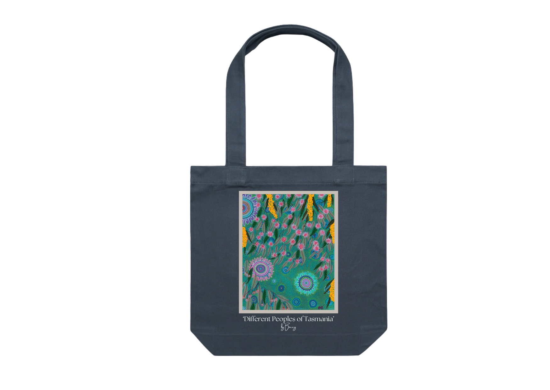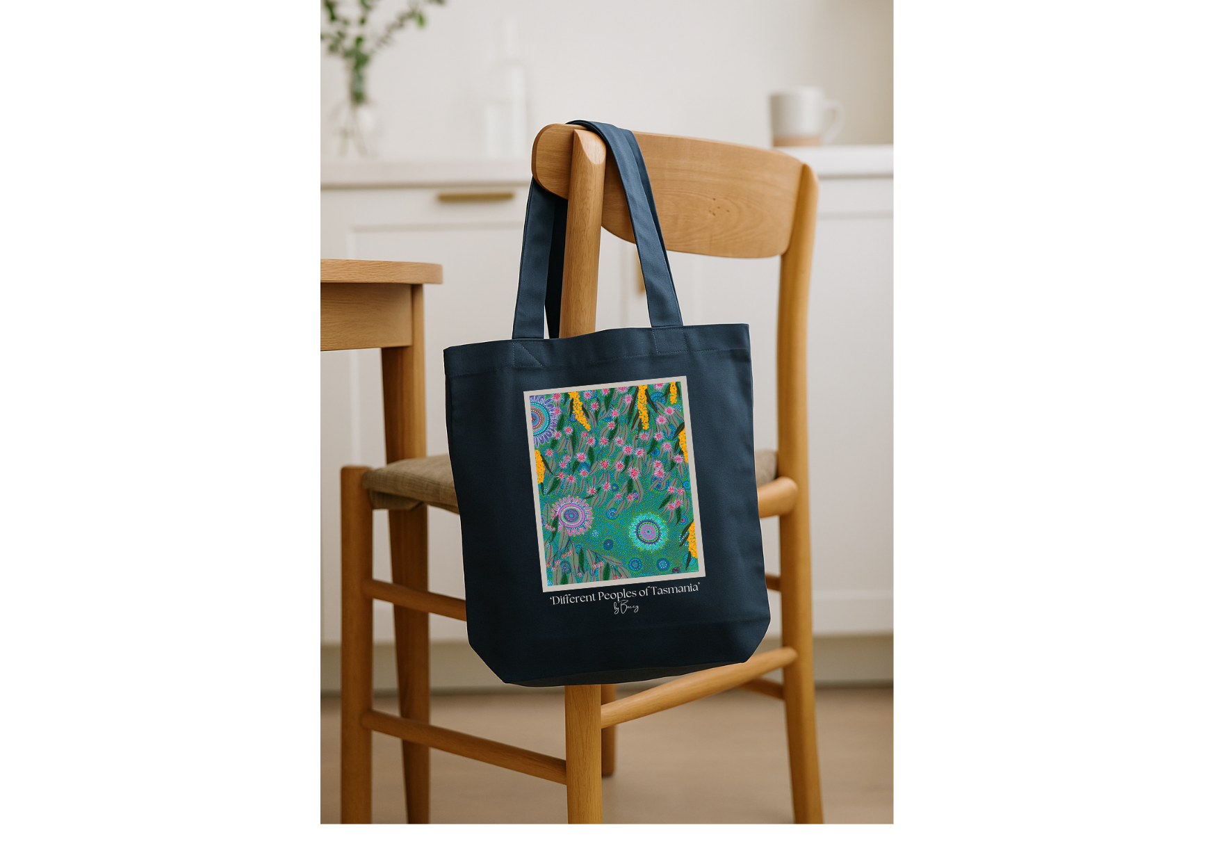 Beccy’s artwork, “Different Peoples of Tasmania”, celebrates connection, culture, and country. You’ll now find her stunning design featured on our new t-shirts and totes. Wearable art inspired by the places, stories and flora of Tasmania.